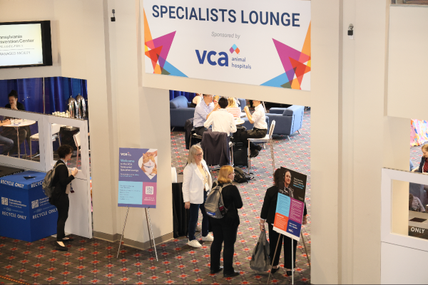 The Solutions Center opened in the morning, where attendees explored exhibitor booths and visited dedicated areas like the Bark Park, Sponsored by Thrive Pet Healthcare, the Cat Lounge Sponsored by Elanco Animal Health and the Technician Lounge Sponsored by ACVIM and AIMVT. At the ACVIM Membership Booth, attendees posed for commemorative photos, enjoyed sweet celebratory treats and shopped new ACVIM merchandise. In the evening, the Wine and Cheese Happy Hour brought attendees and exhibitors together for food and drinks to cap off an eventful day.